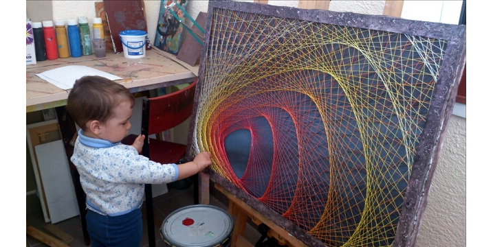 Маленький сын нашего дилера помогает сделать папино произведение светящимся, благо палитра цветов позволяет это выполнить без проблем.