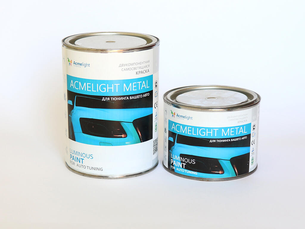 ОПИСАНИЕ: Краска для автотюнинга AcmeLight - специальная краска для эксклюзивного лако -красочного покрытия металлических поверхностей автомобиля, светящаяся в полной темноте; идет в комплекте с отвердителем.