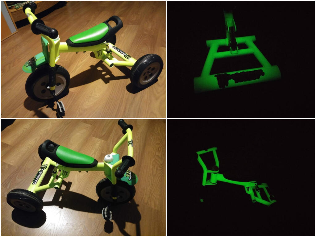 ОПИСАНИЕ: Светящаяся краска AcmeLight Bike - специальная краска для эксклюзивного лако -красочного покрытия металлических поверхностей велосипеда, светящаяся в полной темноте; идет в комплекте с отвердителем.
